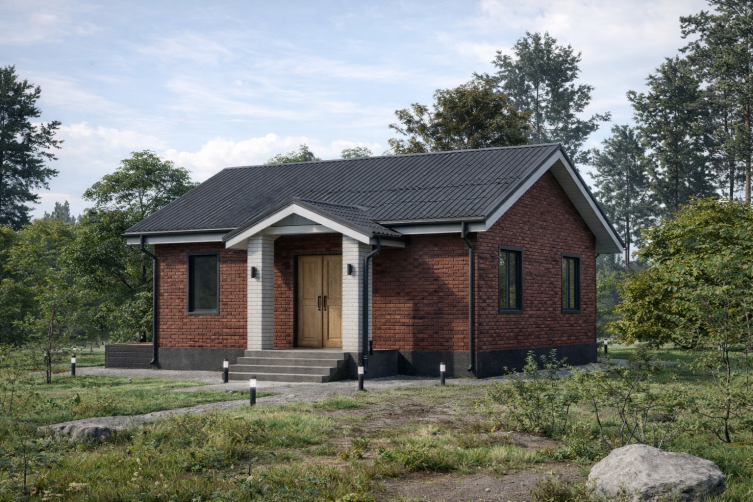 Компактный дом, есть все необходимое: две спальных комнаты, просторная кухня с зоной ТВ, сан.узел и гардеробная. Терраса 17.5 м.кв.