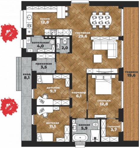 • Общая площадь 104 м2