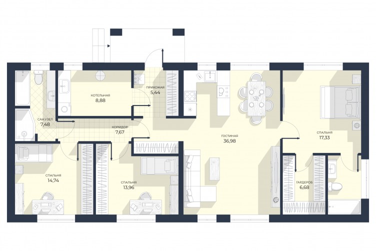 Дом для большой семьи, где есть много места для каждого и прекрасное пространство, где можно собраться всем вместе дружной семьей!