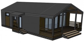 Деревянный одноэтажный дом с эксплуатируемой крышей из 7 модулей. 2 террасы- по 11 м2. Панормное остекление. Внутренняя отделка white box. Лестница на крышу снаружи дома. Есть тех. помещение. Стильный дом для современной семьи, которая ценит комфорт и эргономику.
