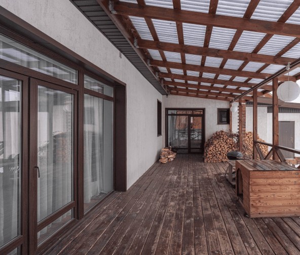 Многофункциональный одноэтажный дом с гаражом на 1 машиноместо, гардеробом, парной, мойкой, раздельным СУ и хозяйственным блоком.