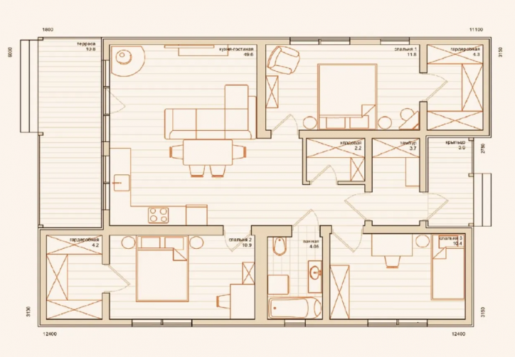 «ModernHouse 85.1» – отличное решение для большой и дружной семьи. Три удобных спальни и просторная кухня-гостиная с выходом на террасу – то, что нужно для постоянного проживания за городом.