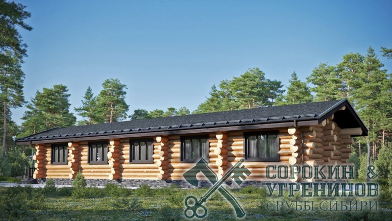 Дом мастерская рубленый из бревна лиственницы диаметром 300мм, площадь дома 123м2. Размер сруба 6х21 метров. Проект разработан для творческой мастерской. Дом был установлен в Нижневартовске в 2021 году.