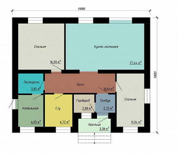 Проект одноэтажного дома в классическом стиле с вальмовой крышей, с гардеробной, постирочной и большой кухней. Имеется 3 спальни.