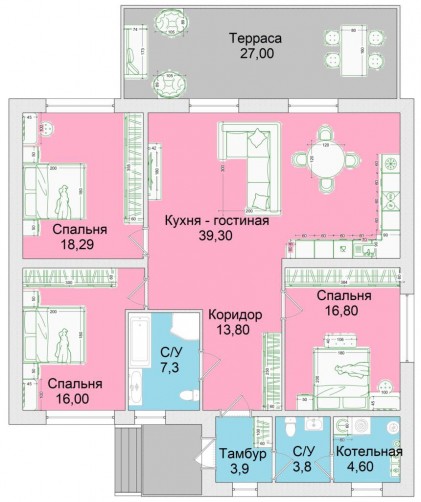 Проект 1-130 идеальное решение для большой и дружной семьи.